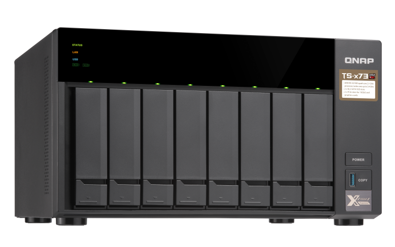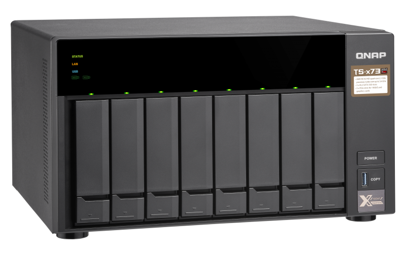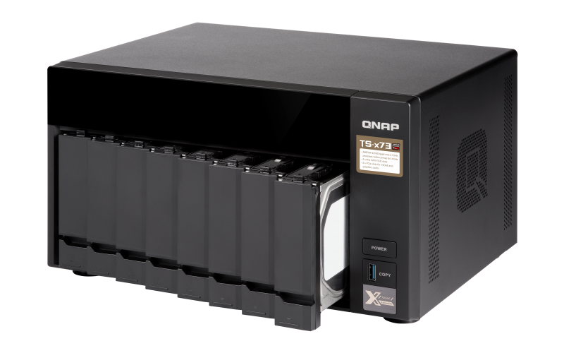 TS-873 採用高效能、低功耗的高階 AMD R 系列嵌入式處理器 (CPU),提供高PCIe擴充性,讓您彈性配置 QNAP QM2 M.2 SSD/10GbE PCIe 擴充卡為 NAS 增添 M.2 SSD 快取與 10GbE 網路;相容無線網卡 (如: QWA-AC2600) 搭配 WirelessAP Station 應用,讓 NAS 成為無線網路基地台;入門圖形顯示卡為 TS-873 提供 4K 影音解碼與轉檔所需之高效能。TS-873 讓您以實惠的預算隨心配置所需應用。